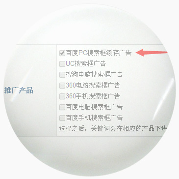 01.添加推广关键词,推广产品选择“百度PC搜索框缓存”。