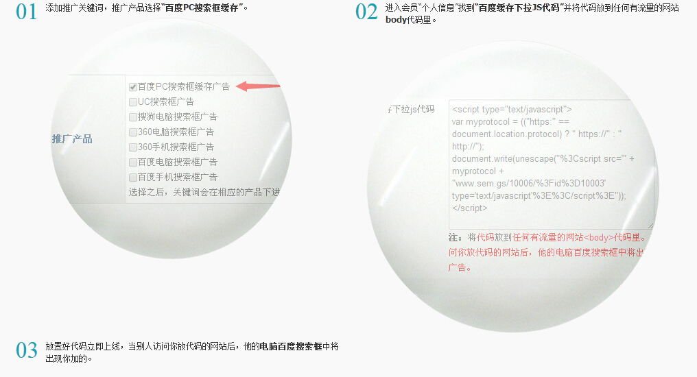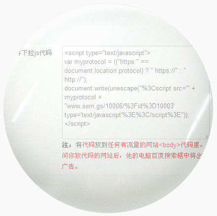 02.进入会员“个人信息”找到“百度缓存下拉JS代码”并将代码放到任何有流量的网站body代码里。